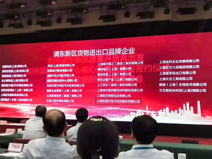 推进会上,浦东新区人民政府和上海市商务委员会签署了合作协议,会议发布了贸易便利化措施及货物贸易、服务贸易、贸易创新等三大类品牌企业。上海奕瑞光电子科技股份有限公司从上万家外贸企业的激烈角逐中脱颖而出,荣获 “浦东新区货物进出口品牌企业”称号。
